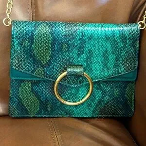 Green vegan snakeskin crossbody in like-new condition with gold hardware.
