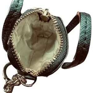 #keychain, key chain, coin purse, miniature, black, lined, real, gold, handles, logo, jump ring,