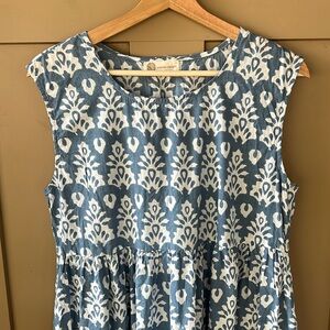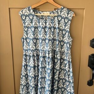 Giardino D”oriente Blue White Cotton Summer Midi Dress Geometric Large
