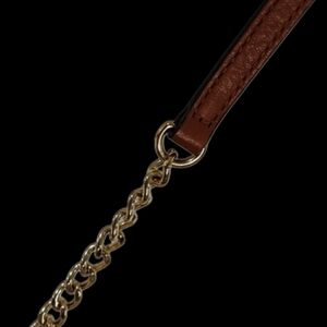 * Adjustable gold-tone chain and brown leather crossbody strap