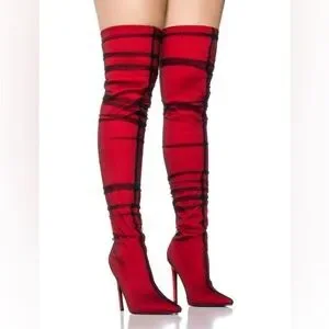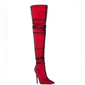 Azalea Wang Red Tulle Covered Thigh High Boots
