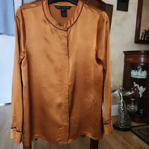 this is a 100% silk blouse top Features hidden buttons covered in the same fabric as the blouse
