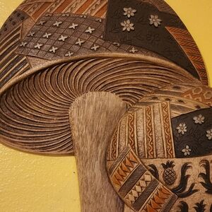 Vintage 1971 mid-century Mushroom plaques, made by Burwood products.