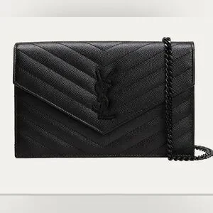 BRAND NEW All Black YSL Monogram Small Wallet on Chain in Grained Leather