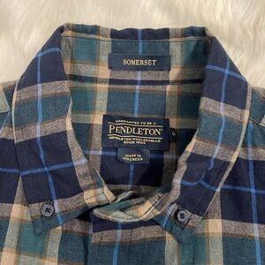 Pendleton Somerset Shirt Button Up Check Cotton Wool Long Sleeve Men Size L