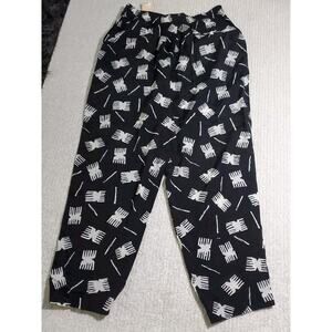Vintage Chaus LG Black White Elastic Waist Lounge Leisurewear Lightweight Pants