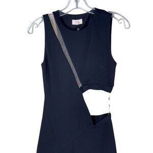 Camila Coelho Alex Maxi Dress in Black Asymmetric Cutout Column Slit XS FLAWS
