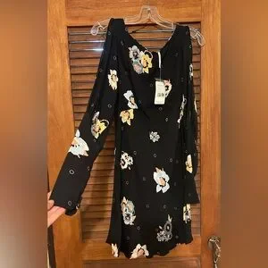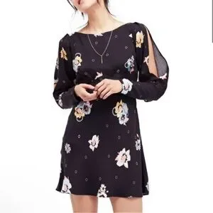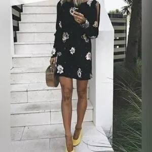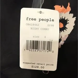 NWT FREE PEOPLE Black Floral Mini “Night Combo” Sunshadow Dress Size 4