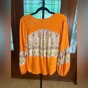 Anthropologie Maeve Ceresco Orange Floral Peasant Blouse NEW