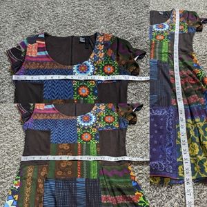Desigual colorful patchwork pattern short sleeve dress L