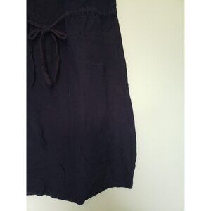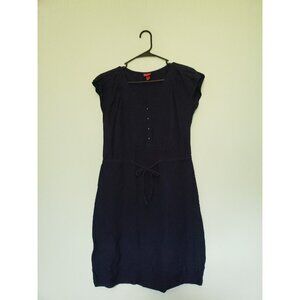 Merona Womens 6 Dress Short Sleeve Waist Tie Half Button Linen Rayon Blue V Neck
