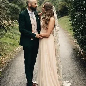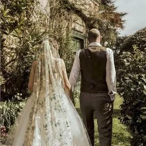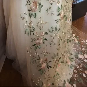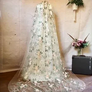 Embroidered Veil - Pink Rose on White Tulle - 118inches