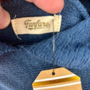 New with Tags, Fanfare Knit Overpiece - Poncho, Wrap, Hoodie, Sweater. Pullover, No Closures - Buttons are Decoration Only. Attached Hood. Open on the Sides. Front Kangaroo Pocket. Pefect for Rooting on your Favorite Sports Team! One Size Fits Most - See Measurements. Orange, Navy Blue.