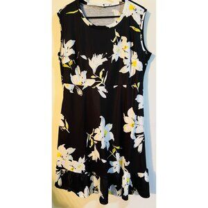 Sleeveless Floral Lily Black & White Dress With Ruffle Hem - Size L