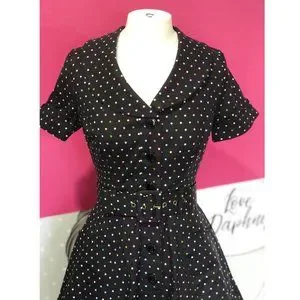 1950s Black and Multicolor Polka Dots Brette Swing Dress