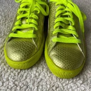 Puma Womens’ Basket Future Minimal Sneaker. Color Safety Yellow. Size 6. Lace-up sneaker. VERY RARE SNEAKER! WORN ONCE! EXCELLENT CONDITION! Minor stains from mainly sitting in storage. No damage. See all pics for reference. Purchased from Amazon - pics from original listing at the end.
