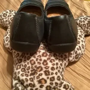 Black leather flats, like new