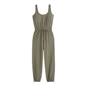 Easy-fitting jumpsuit in our comfy, active Traveler fabric, featuring adjustable wide straps, scoop neckline, elastic waist detail with exterior drawcords and metal aglets and pockets. Imported.