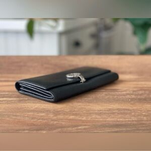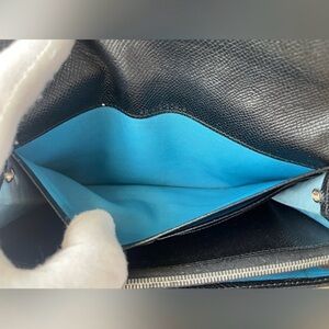 Authentic Black Bvlgari Leather Bifold Long Wallet, upgraded to a crossbody with added unbranded chain.