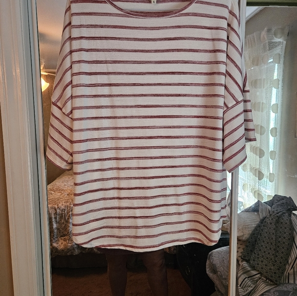 Swoop neck, drop shoulder, hits at hips. Brand New without tags, ever worn.