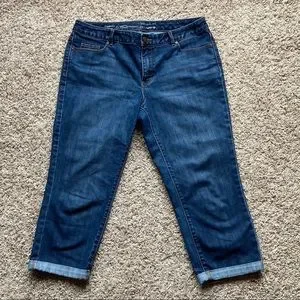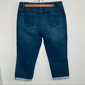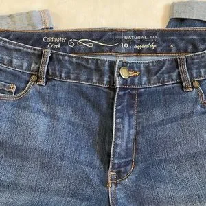 Excellent used condition*Coldwater Creek*Cropped/Cuffed jeans*9½" rise*21" inseam 35" waist (mid to low-rise). RN#98516, V#100562 4022245, 1213, 73% Cotton, 27% Elasterell-P