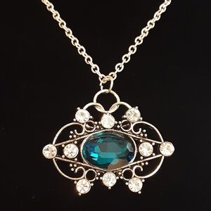 Hand Crafted Teal One Of A Kind Rhinestone Dressy Necklace,