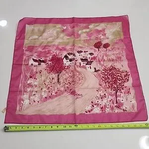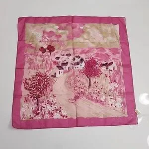 Pink Tan White Cream Countryside Print 100% Polyester Scarf