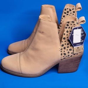 Toms Everly Leather Cutout Heeled Boot in Honey Leather Tiny Cheetah