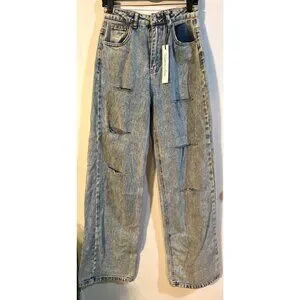 Highway Jeans Distressed High-Waisted Straight-Leg Denim Pants Juniors Size 9