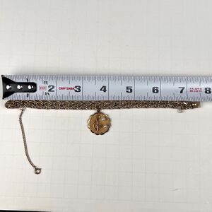 This vintage 1964 Kaco Signed 12K Gold GF Charm Bracelet features a sweetheart treble clef design with two cultured pearls. The bracelet is a dangle charm style with a yellow gold filled metal purity. It is 7 inches in length and signed by the brand Kaco. The charm bracelet is perfect for special occasions like anniversaries, birthdays, or Christmas, and is a beautiful piece of fine jewelry for women who appreciate vintage and unique accessories.
