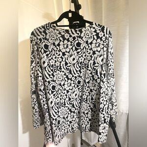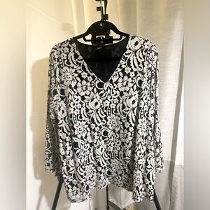 ALFANI- BLOUSE black with white flowers, V-neck blouse size L