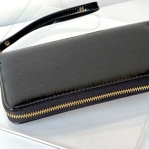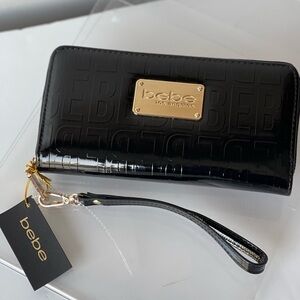 NWT! (MSRP $49) Bebe Black Wallet Purse Alexandria Wristlet Gold Logo