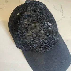Gucci Monogram GG Lace Baseball Cap (Black) Size S