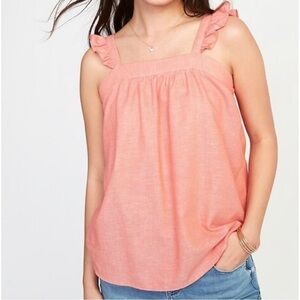 NWT Old Navy Coral Sleeveless Ruffle-Trim Linen-Blend Women’s Top Size XXL