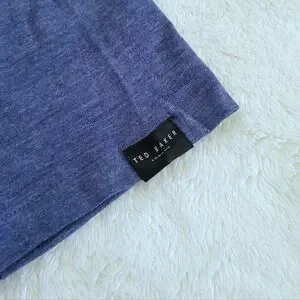 Color of teeđź‘• is a heather blueđź’™ with "TB" logo on front left chest in white and blackđź–¤ "Ted Baker London" logo tab on left sleeve hem
