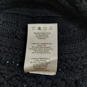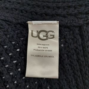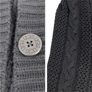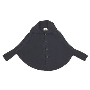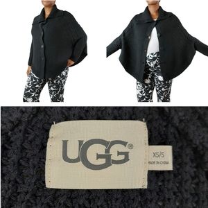 UGG Black Maribeth Cocoon Cape Ribbed Cable Knit Cardigan. Size XS/S. Unique cardigan with front button closure, ribbing on collar, down front button, bottom hem and cuffs, cable knit details downside shoulders, cowl collar, bat-cape like style with an oversized fit. *note* there isn’t a direct pit measurement as cardigan is oversized. Measurements are approximate. Cardigan in good preowned condition.