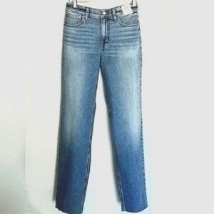 A mid-rise version of J.Crew's best selling '90s inspired jean with a relaxed, straight leg and a lower-rise. Size 27 T (tall). Raw hemline. Classic 5 pocket construction. Button and zip fly closure with standard belt loops. Color Downtown Wash. Vintage wash detailing. Approx 31.5" Inseam. 10" front rise. Straight leg. Raw hemline. New with tags.