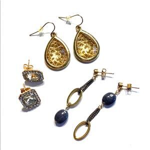 Boho Jewelry Lot of 3 pairs pierced earrings gold tone studs & dangle teardrops
