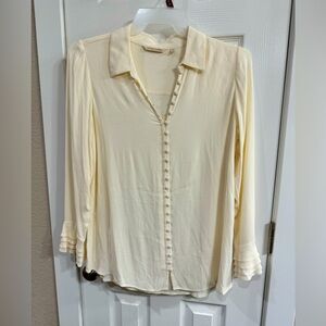 Soft Surroundings V-neck button down blouse with layered sleeve cuffs; like new condition