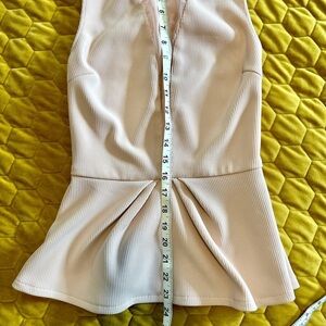 Pale pink sleeveless top from Sugar Lips. Sheer detailing in the front. Cross cross in the back. Side zipper, back button closure. 100% polyester. In excellent pre-owned condition! See pics for measurements.