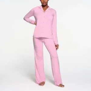 Skims Sleep Long Sleeve Button Up Set - Bubble Gum