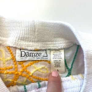 Vintage 80s Damze Springtime Floral Chenille Crew Neck Short Sleeve Sweatshirt