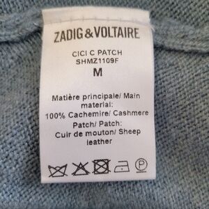 Zadig & Voltaire Med Blue Bolt patch Cashmere Sweater. Distressed raw edge