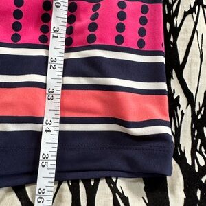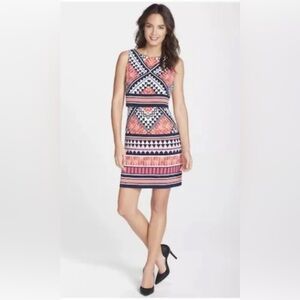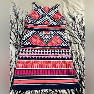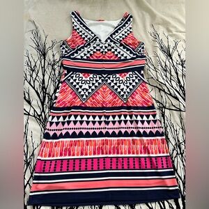 Eliza J popover shift dress, pink navy geo pattern, sz 8, EUC
