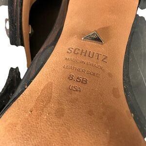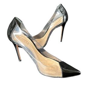 SCHUTZ PATENT LEATHER PUMPS BLACK SIZE 8.5B. Used, small signs of wear otherwise in great condition. Pointed toe stiletto 4.25” heels. Runs true to size.