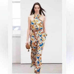 Anthropologie printed halter jumpsuit