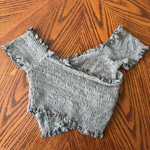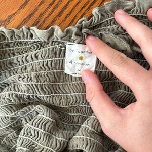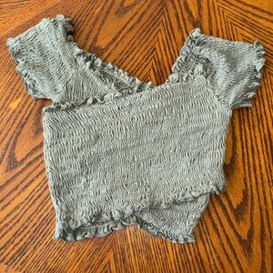 Olive green criss cross smocked crop top from By Together. Size M. Very unique! Super soft fabric (jersey-like) no flaws, excellent used condition. Would be a great transition piece from summer into fall with something layered over it.