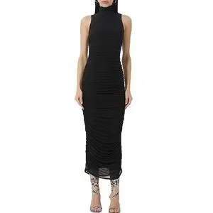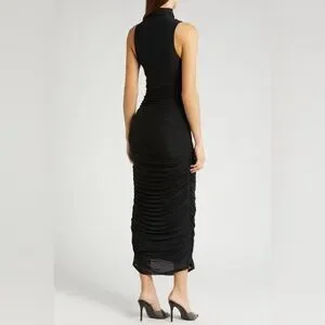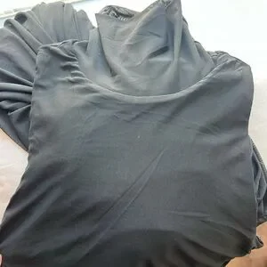 Comfortable and stretchy black dress with mesh overlay and mesh turtle neckline. Wore to two weddings and absolutely loved it!
