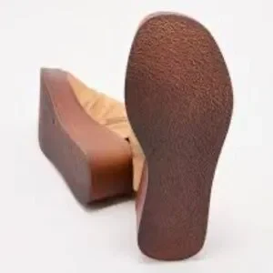 Miz Mooz Greenwich tan leather platform wedge peep toe shoes womens 3EU 39 (US 8.5-9)