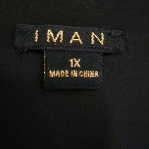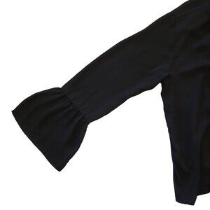 IMAN 1X Black Long Sleeve Top Bouse Shirt Blouson V Neck Bell Sleeves